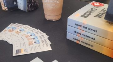 Another older woman and her mother were there to compile a list of new books to purchase in the future. Riding the Waves was of keen interest, as the mother had recently lost her husband. Both of them, plus the daughter’s sister had also had cancer bouts as well. The hug the mother and I shared seemed like it was well needed by the new widow, so I was grateful to be there for our conversation around loss.